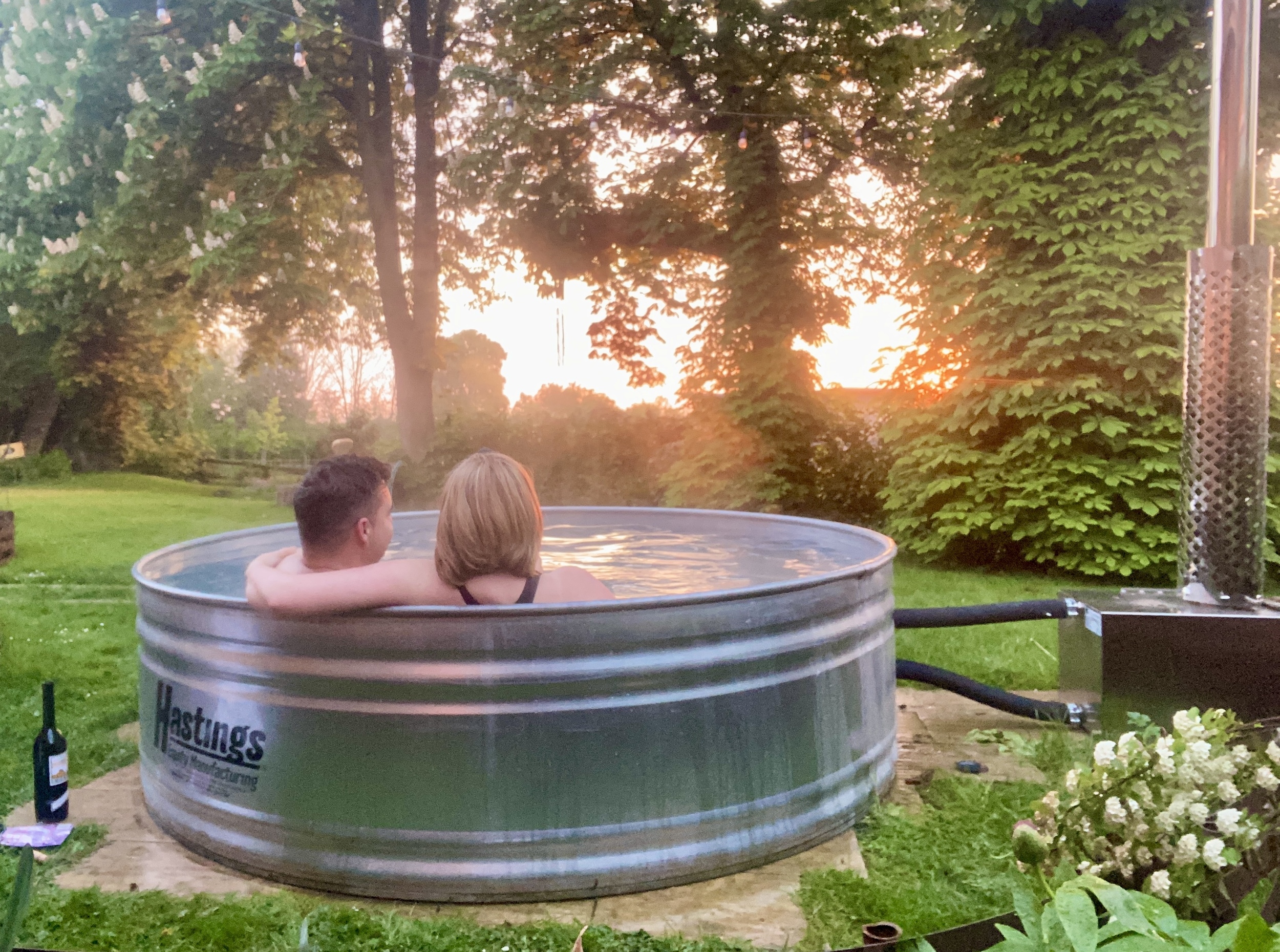 Enjoy your very own hot tub at home without running up high electricity bills. Our round stock tank is ideal for groups of people and the wood fired heater will heat the tank to 37 degrees C in around 3 hours depending on size tank.