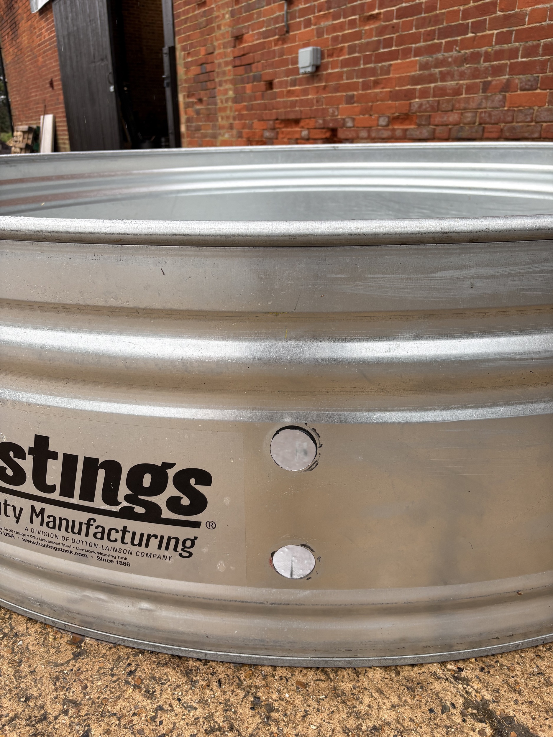 This tank has 2 holes drilled in it for a heater or chiller. 50mm wide holes. It has a few marks on the outside and some scratches on the inside walls.